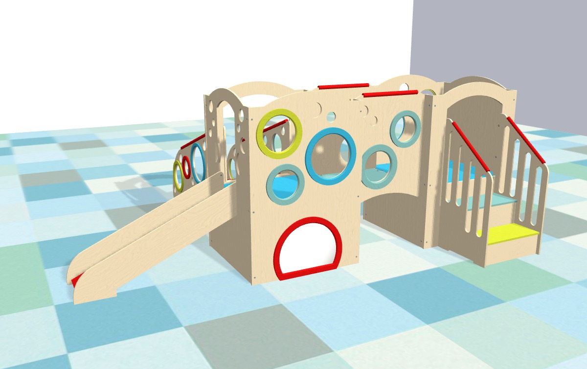 Our Under2 playset line is specially designed to meet the safety and developmental needs of infants and young toddlers with a variety of play accessories like a small slide, mirrored panels, and easy-to-climb ramps and stairs to encourage active play.