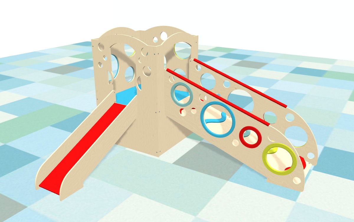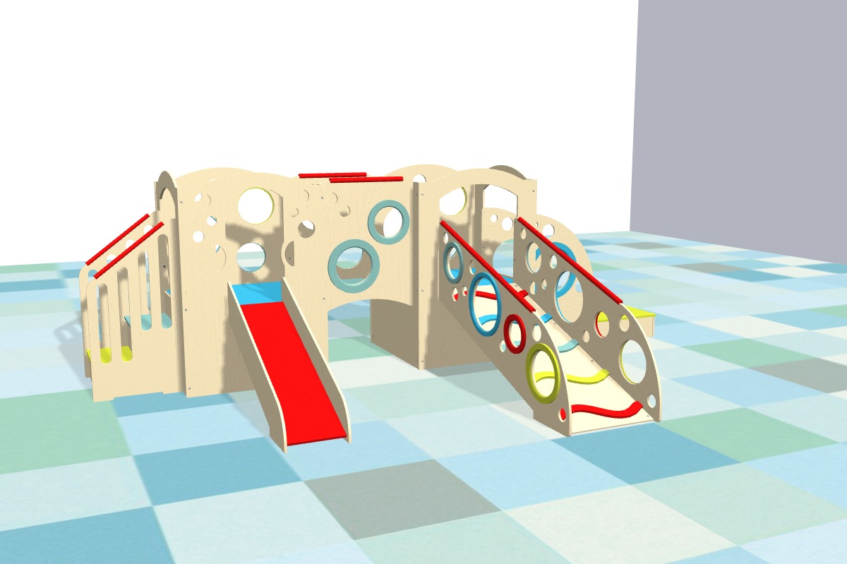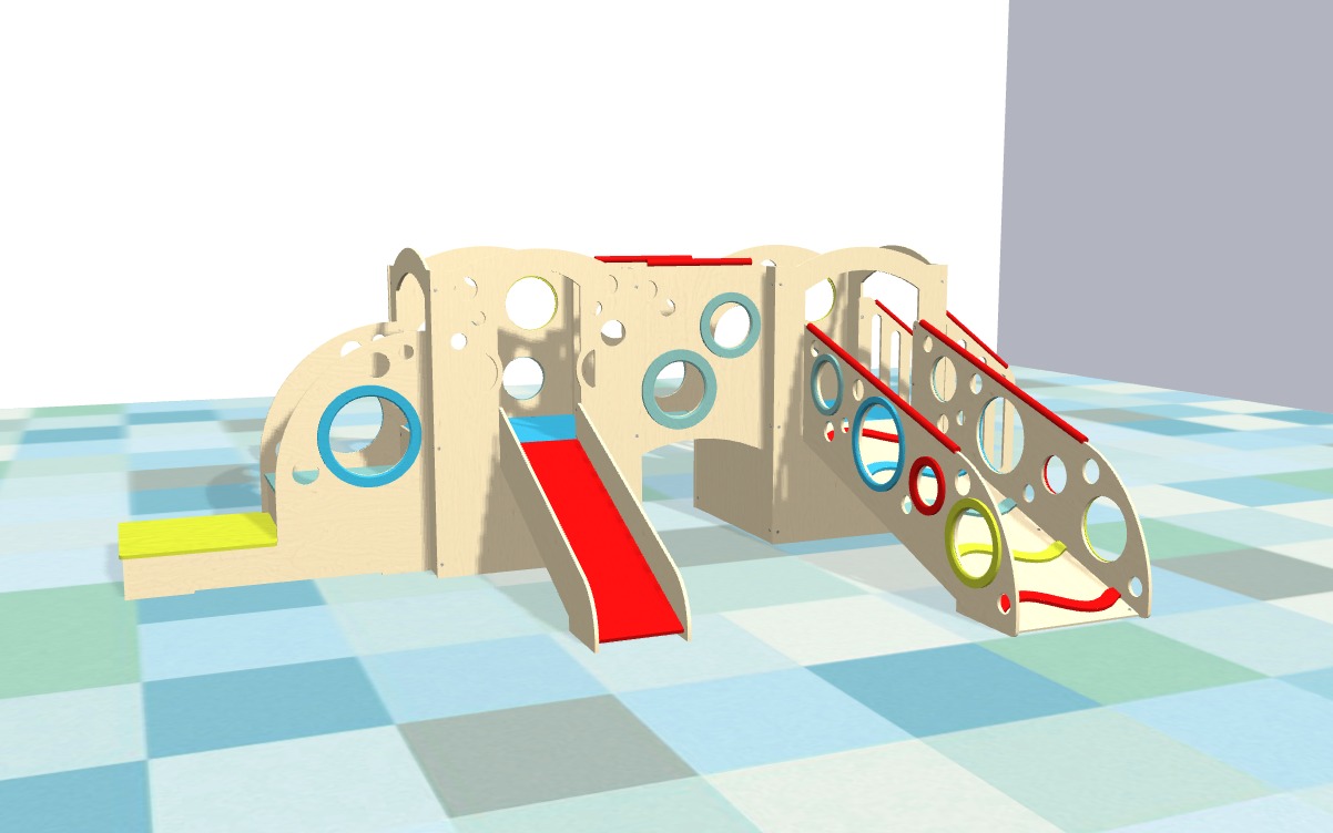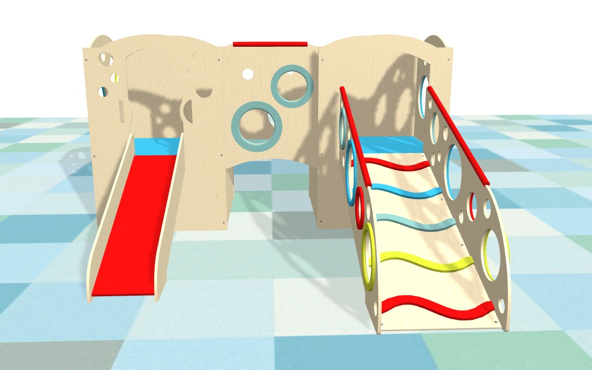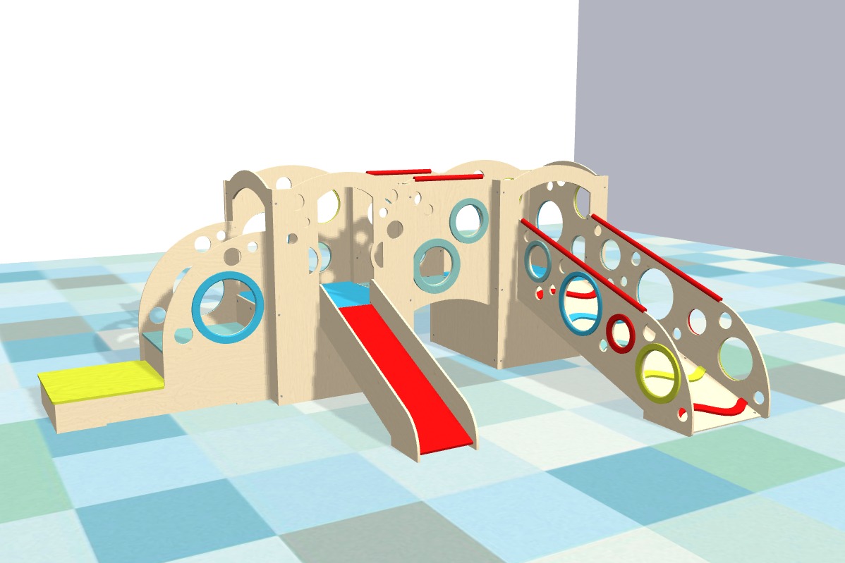 Our indoor playsets are modular and feature panels and play accessory configurations to allow you to choose or design a playset that fits a small or large play area, in a corner or smack in the middle of the room. Whatever your play space allows, we can fit.